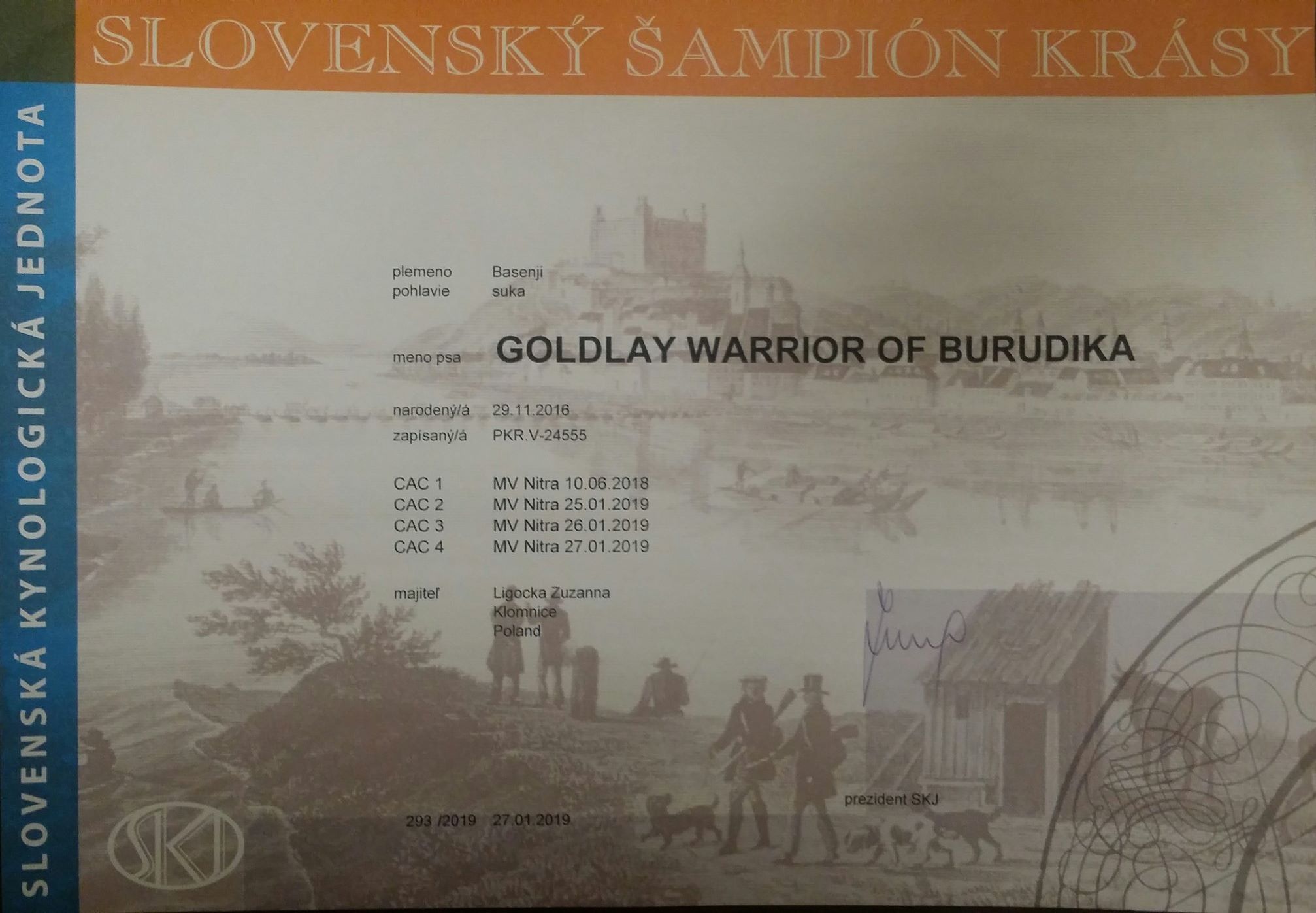 GOLDLAY WARRIOR OF Burudika zgarnęła wszystko, czyli ocenę doskonałą, I lokatę, wniosek na championa Słowacji CWC, CACIB, Zwycięstwo Rasy oraz dodatkowo w ten dzień przyznawana była Kwalifikacja na prestiżową wystawę w Anglii Crufts w 2019.
