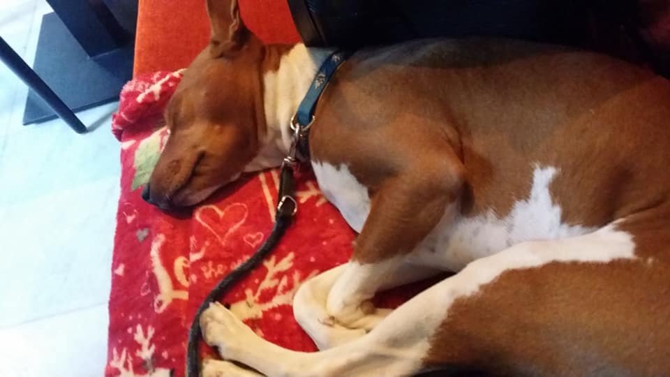 Za to teraz ze względu na sytuacje z koronawirusem nie mamy nadal ani wystaw, ani coursingów, ani nawet naszych codziennych aktywności, np. baskowego biegania na wybiegu i czas spędzamy głównie na leniuchowaniu, jak widać na zdjęciu :D