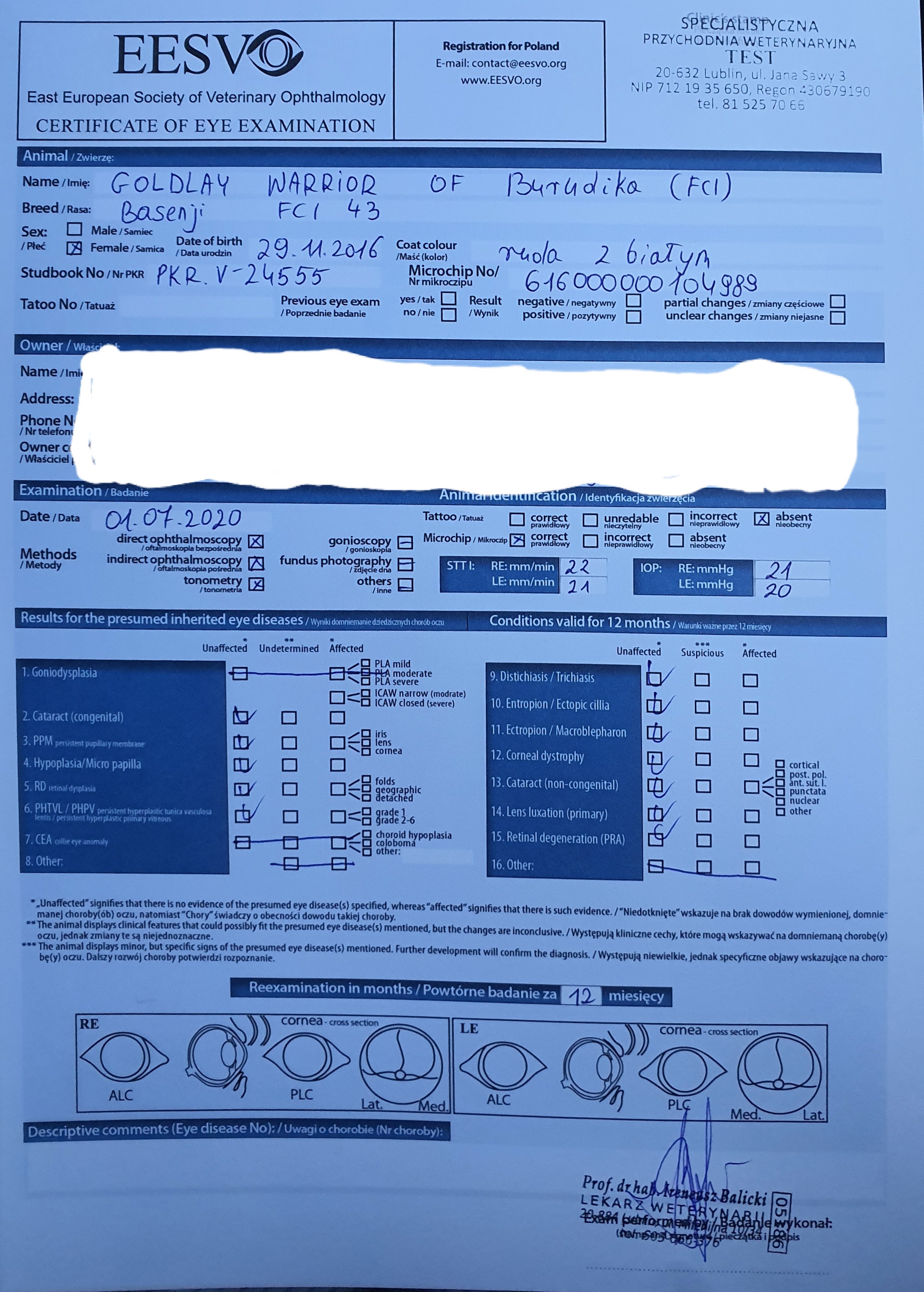 Dzisiaj jesteśmy w świetnym nastroju, ponieważ przygotowując się do planowanego miotu odwiedziliśmy Prof. Balickiego, u którego Goldi przeszła badanie oczu i wiemy, że wszystko jest w jak najlepszym porządku.