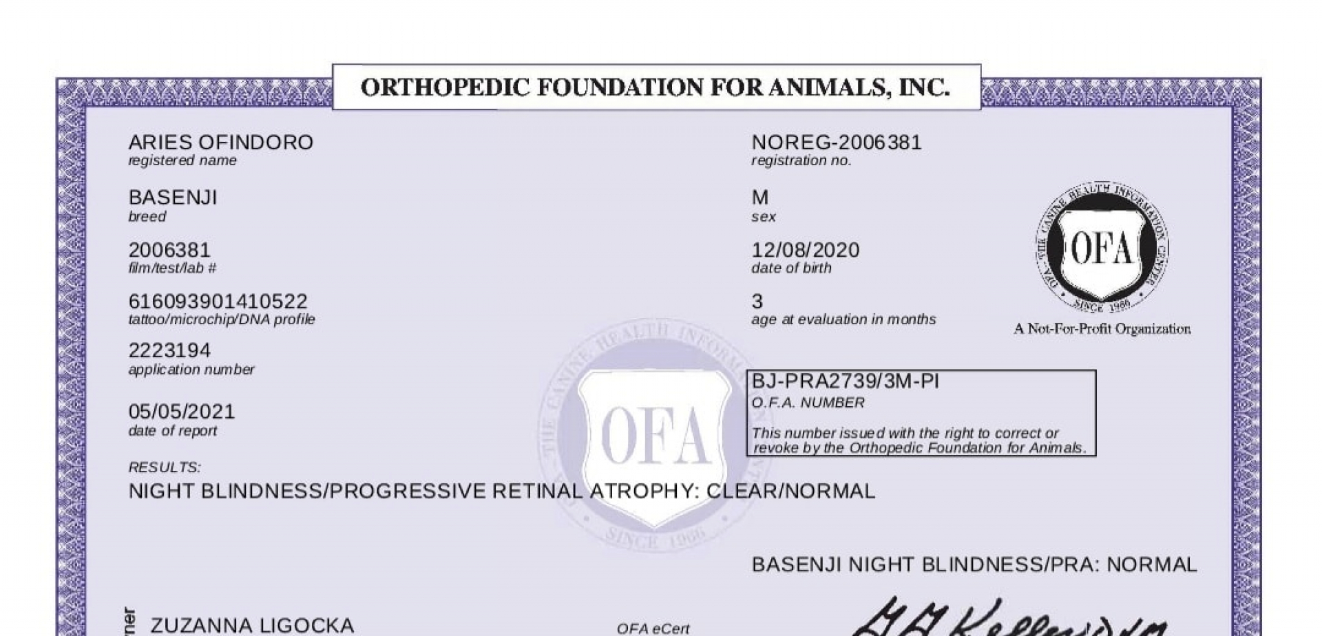„Pinky” ARIES Ofindoro został przebadany genetycznie i jest CLEAR pod kątem choroby oczu PRA ?